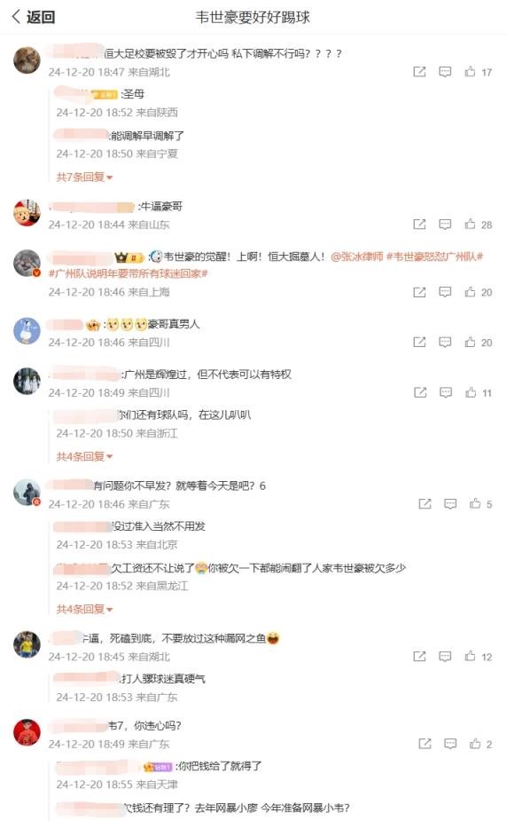 在韋世豪的微博評論區(qū)下充斥著兩種聲音,一種認(rèn)為韋世豪當(dāng)初也是廣州隊(duì)隊(duì)長,有什么事可以商量,另一種則認(rèn)為俱樂部欠債還錢天經(jīng)地義。你怎么看?